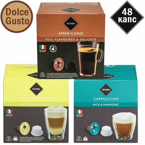 Кофе капсульный RIOBA Ассорти 48 капс, 496 гр, Латте макиато, Американо, Капучино / Dolce Gusto (Дольче Густо)