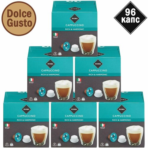 Кофе капсульный RIOBA Capuccino, 96 капс, 1152 гр, темная обжарка, крепость 8, Dolce Gusto (Дольче Густо), Риоба Капучино