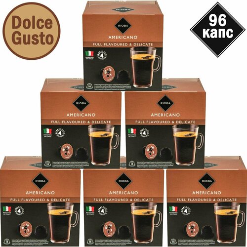 Кофе капсульный RIOBA Americano, 96 капс, 672 гр, средняя обжарка, крепость 4, Dolce Gusto (Дольче Густо), Риоба Американо