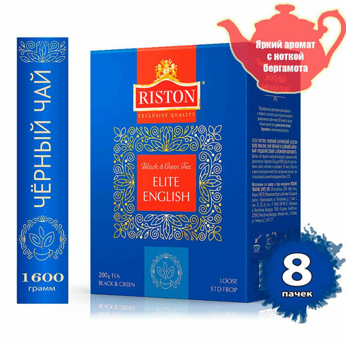Чай Riston English Elite листовой черный и зеленый, 8 пачек по 200 г