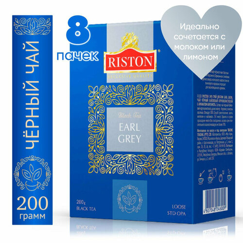 Чай Riston Earl Grey листовой черный с ароматом бергамота, 8 пачек по 200 г