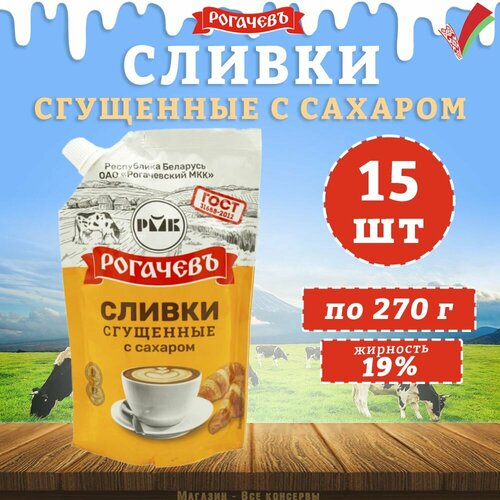 Сливки сгущенные с сахаром 19% дойпак Рогачев ГОСТ, 15 шт по 270 г
