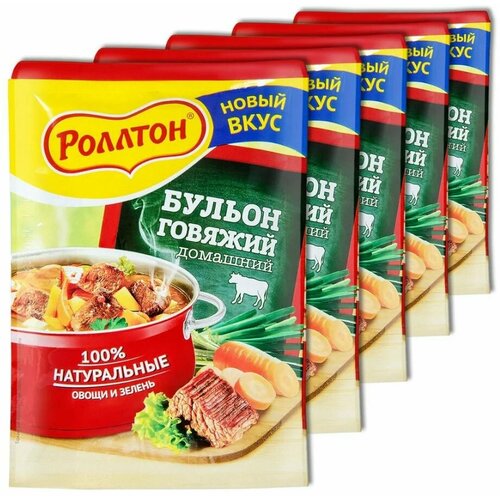 Бульон говяжий Роллтон домашний в пакете, 90 гр — 5 штук