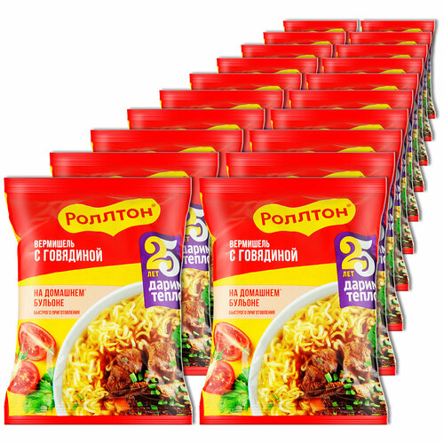 Лапша быстрого приготовления Роллтон "Говядина", в пакете 60 г, 20 шт.