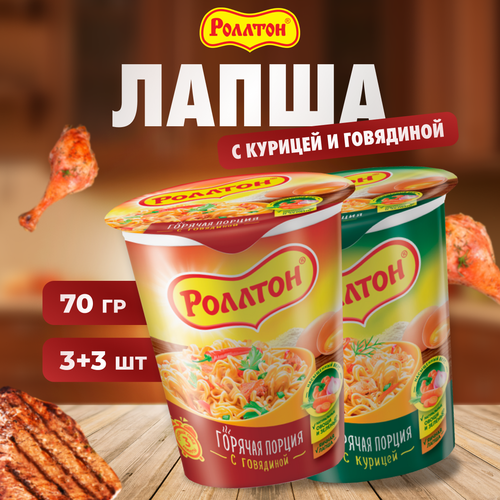 Лапша быстрого приготовления Роллтон куриная 70 гр стакан 6 штук