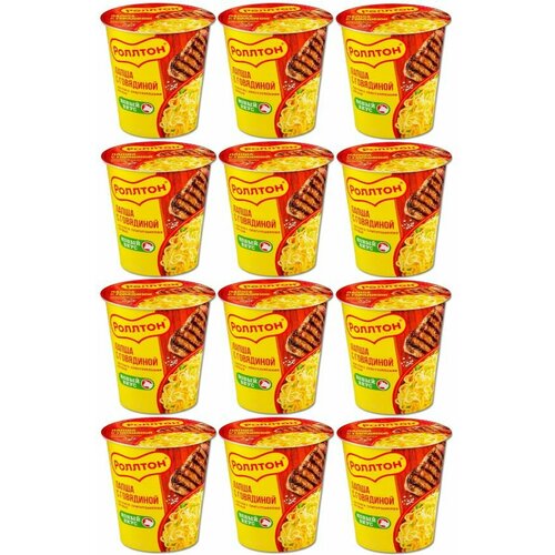 Лапша быстрого приготовления Роллтон "Говядина" в стакане 70 гр — 12 штук