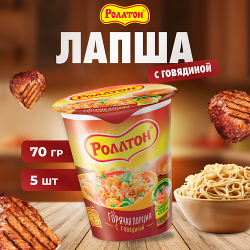 Лапша быстрого приготовления Роллтон со вкусом говядины 5 шт по 70 г