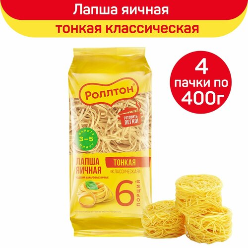 Лапша яичная Роллтон, классическая, тонкая, 4 шт по 400 г