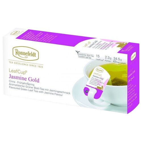 Ronnefeldt Чай LeafCup Jasmine Gold зеленый листовой с жасмином в сашетах на чашку 15 шт х 2,5 г.