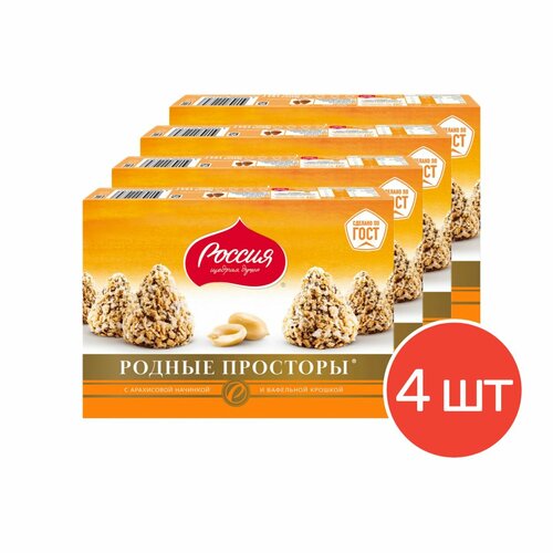 Конфеты в коробке "Родные Просторы" с арахисовой начинкой и вафельной крошкой 125г 4 шт