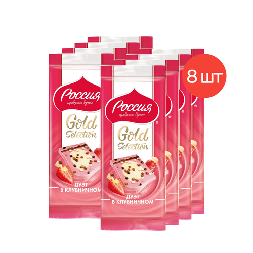 Плиточный шоколад, "Россия — Щедрая Душа! Gold Selection","Дуэт в клубничном" белый, декорированный, с клубникой, 85г 8 шт