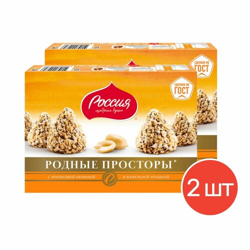 Конфеты в коробке "Родные Просторы" с арахисовой начинкой и вафельной крошкой 125г 2 шт