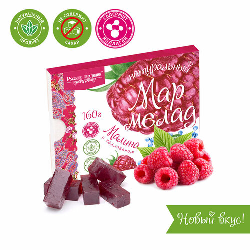 "Русские Традиции" — Натуральный мармелад с малиной и коллагеном, Без сахара, 160 грамм