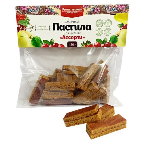 Яблочная пастила ломтиками "Русские традиции" ассорти (без сахара), 150г