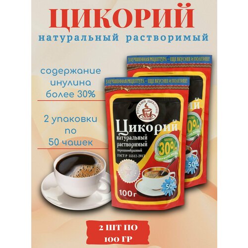 Цикорий натуральный порошкообразный растворимый, Русский цикорий, 2 шт по 100 гр