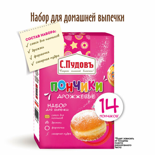 Набор для выпечки "Пончики дрожжевые " С. Пудовъ, 0,500 кг (смесь, дрожжи, формочка, сахарная пудра)