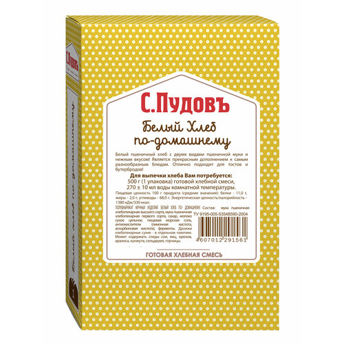 С.Пудовъ Смесь для выпечки хлеба Белый хлеб по-домашнему, 0.5 кг