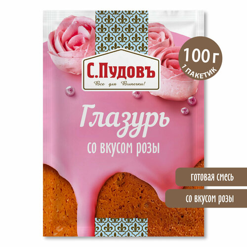 Глазурь кондитерская с ароматом розы, С. Пудовъ, 100 г, саше, розовая