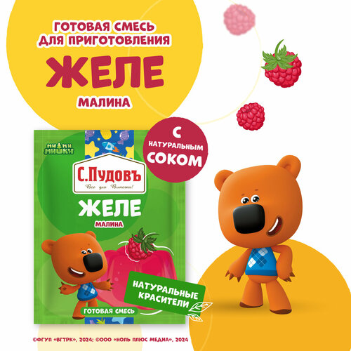 Готовая смесь "Желе Малина" МиМиМишки С. Пудовъ, фруктовое желе в пакетике,45 грамм.