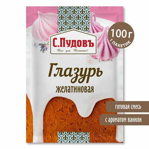 Глазурь кондитерская на желатине, С. Пудовъ, 100 г, саше, белая
