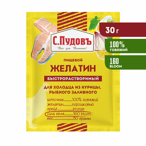 Желатин для холодца из курицы, заливного из рыбы С. Пудовъ, 30 г