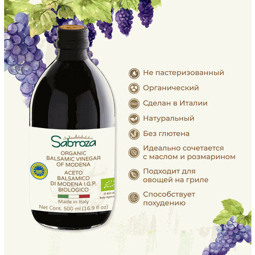Sabroza Уксус бальзамический из Модены непастеризованный, органический, нефильтрованный 500 мл. Стекло