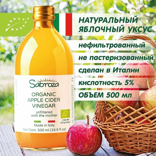 Sabroza Уксус яблочный 1 Литр непастеризованный, органический, нефильтрованный c мякотью. Стекло