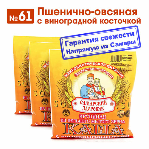 Каша "Самарский Здоровяк” №61 Пшенично-овсяная с виноградной косточкой, 240 г х 3 шт