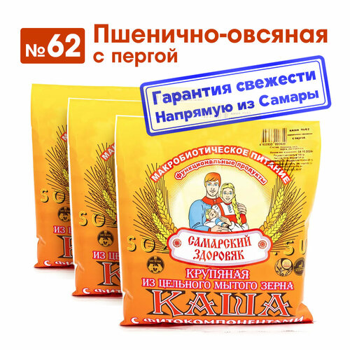 Каша "Самарский Здоровяк” №62 Пшенично-овсяная с пергой, 240 г х 3 шт