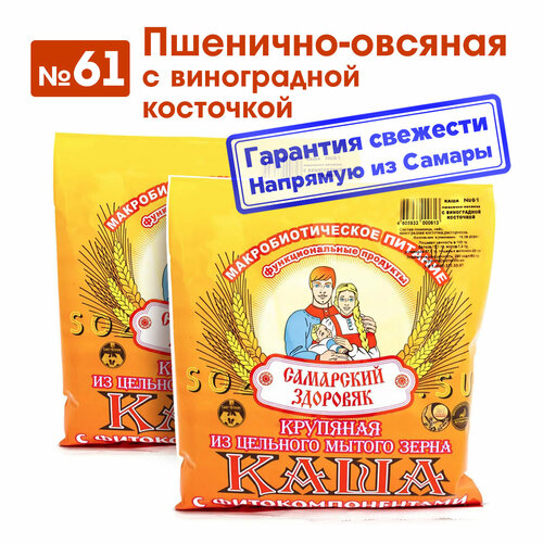 Каша "Самарский Здоровяк” №61 Пшенично-овсяная с виноградной косточкой, 240 г х 2 шт