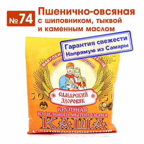 Каша "Самарский Здоровяк” №74 Пшенично-овсяная с шиповником, тыквой и каменным маслом, 240 г.