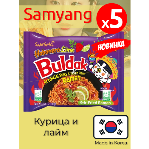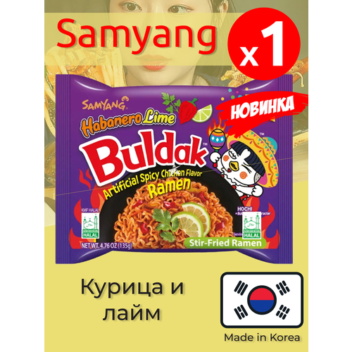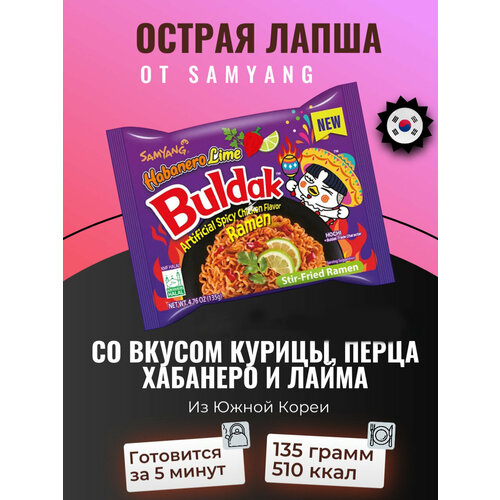 Лапша быстрого приготовления Samyang Buldak со вкусом курицы, перцем хабанеро и лаймом 135 г, Южная Корея