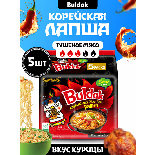 Лапша быстрого приготовления Samyang Buldak Ramen Stew Type, со вкусом тушеного мяса, 5 порций
