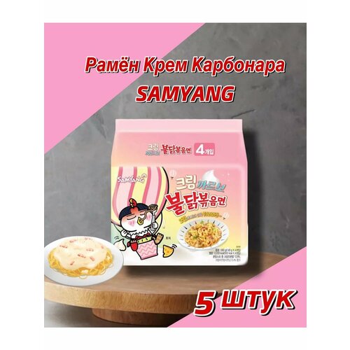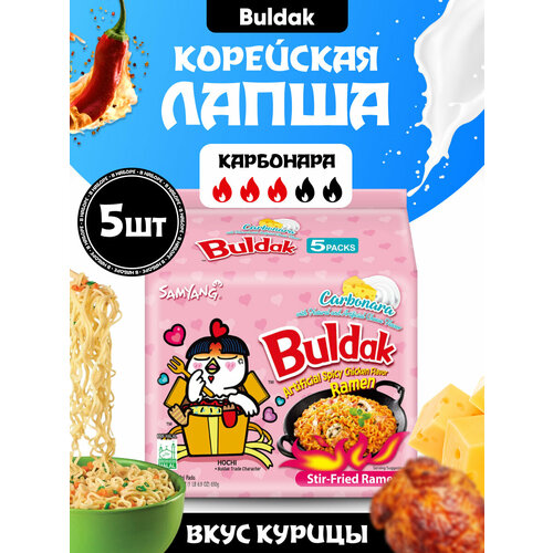 Лапша быстрого приготовления Samyang Buldak Ramen-Carbonara со вкусом острой курицы и карбонары, набор 5 шт.