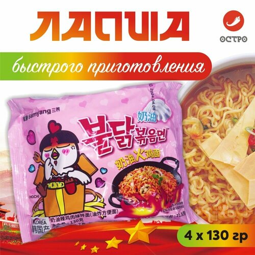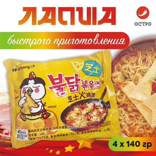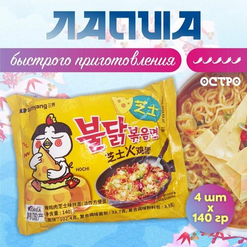 Корейская Острая лапша быстрого приготовления со вкусом сыра Samyang Hot Chicken Buldak 4 шт / Желтая