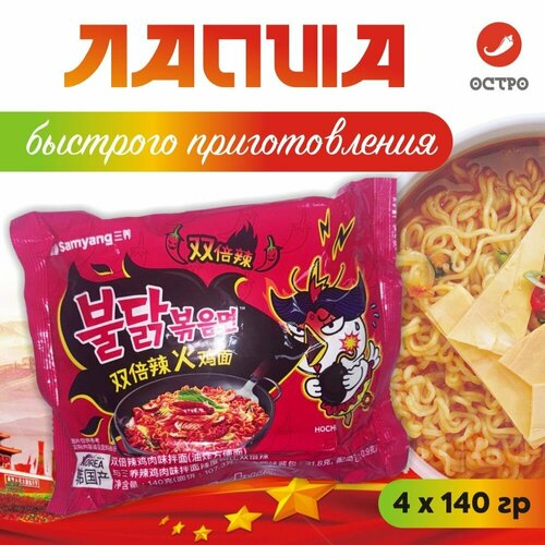 Корейская Острая лапша быстрого приготовления со вкусом курицы 2хSpicy Hot Chicken Flavor Ramen 2x Spicy Buldak 4 шт / Касная