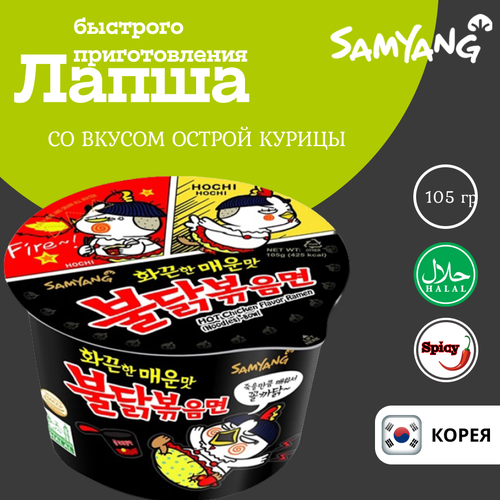 Лапша Samyang Buldak со вкусом курицы 2x Spicy Big Bowl, 105г.х3шт.
