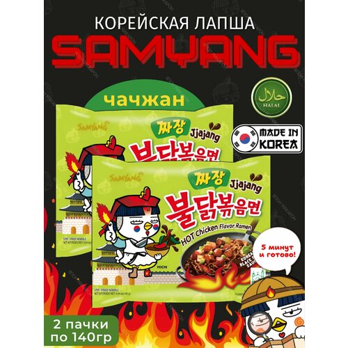 Корейская острая лапша быстрого приготовления SAMYANG Jiaiang со вкусом курицы в бобовом соусе 2шт