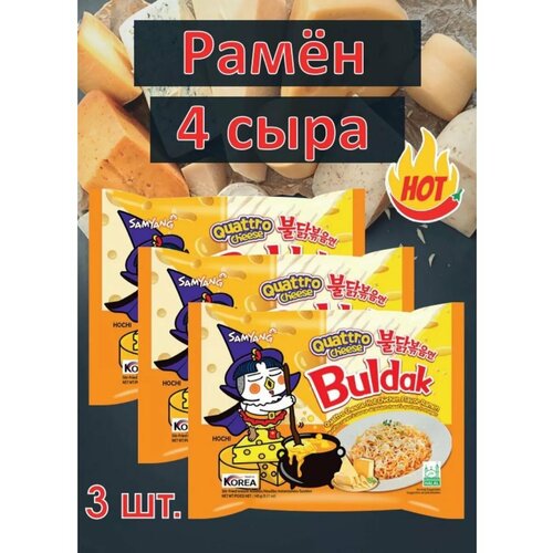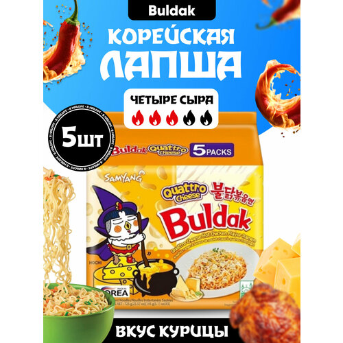 Лапша быстрого приготовления Samyang Buldak "Quattro Cheese", пшеничная, острая, со вкусом 4 сыра