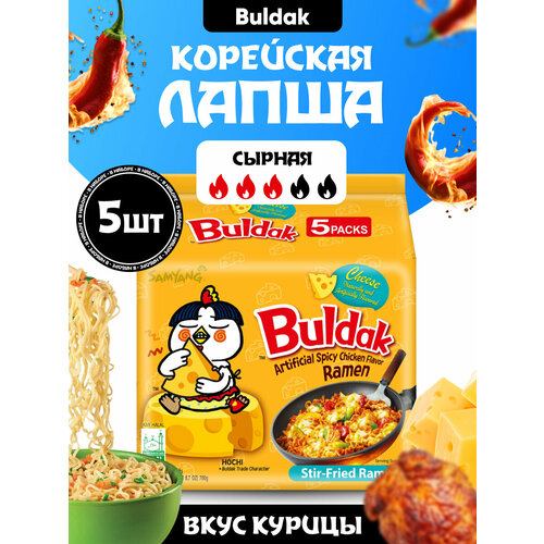 Лапша быстрого приготовления Samyang Buldak Cheese Ramen со вкусом острой курицы и сыра, набор 5 шт