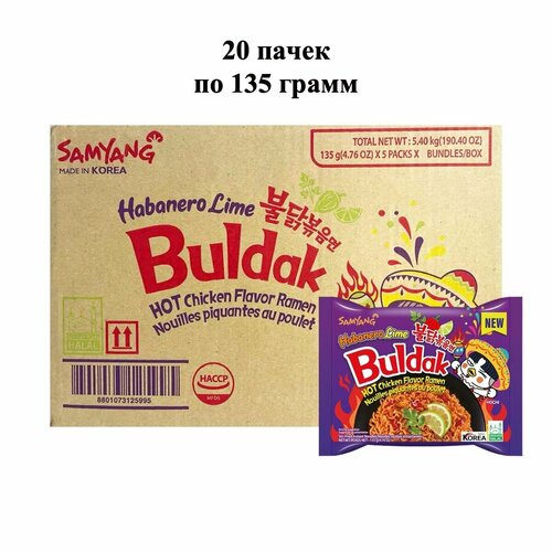 Лапша быстрого приготовления Samyang Buldak Habanero Lime со вкусом острой курицы и лайма, набор 5 шт.