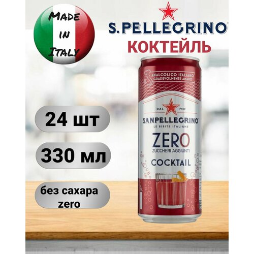 Газированный напиток Sanpellegrino Coctail Zero Санпеллегрино Коктейль без сахара, 24 шт * 330 мл, Италия