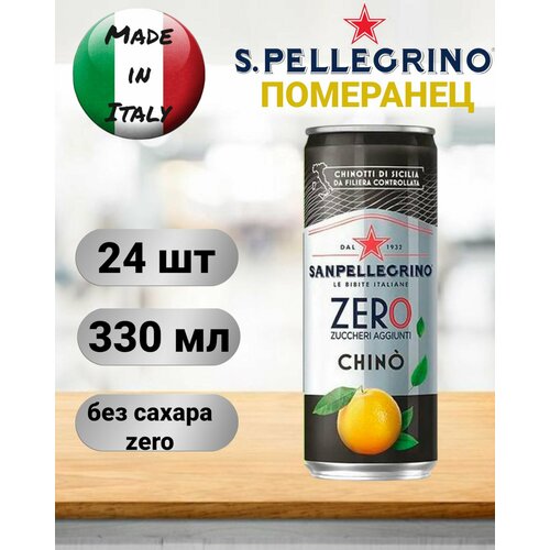 Газированный напиток Sanpellegrino Chino Zero Санпеллегрино Померанец без сахара, 24 шт * 330 мл, Италия