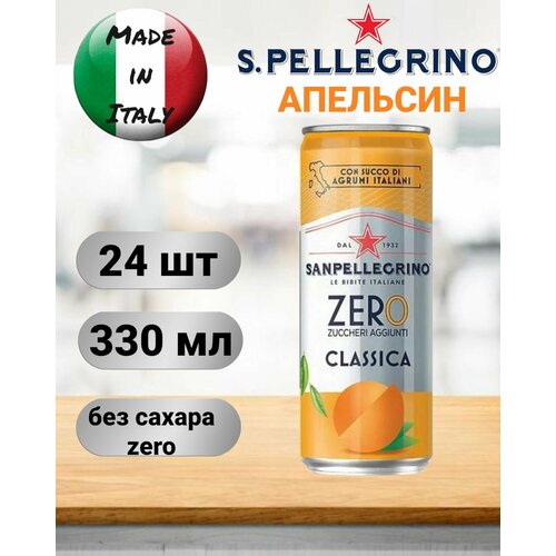 Газированный напиток Sanpellegrino Aranciata Zero Санпеллегрино Апельсин без сахара, 24 шт * 330 мл, Италия