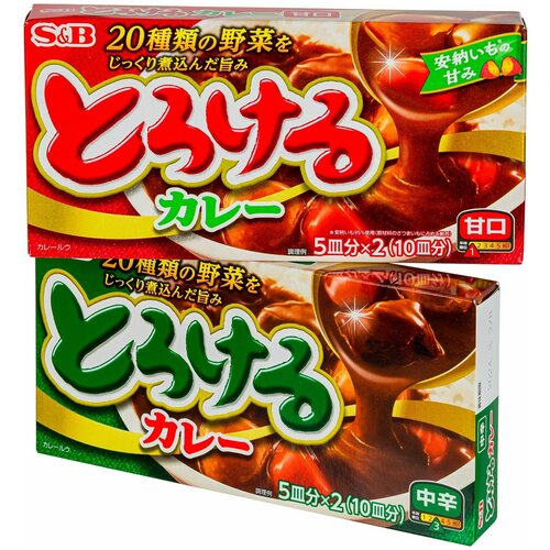 Карри пикантный с мясом и овощами и карри сладкий с мясом и овощами (2 штуки в наборе) "S&B", Япония