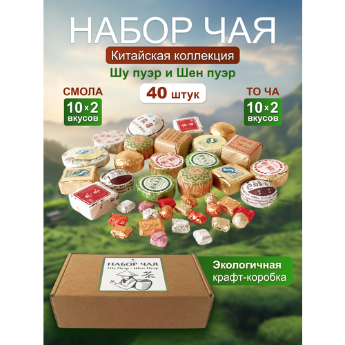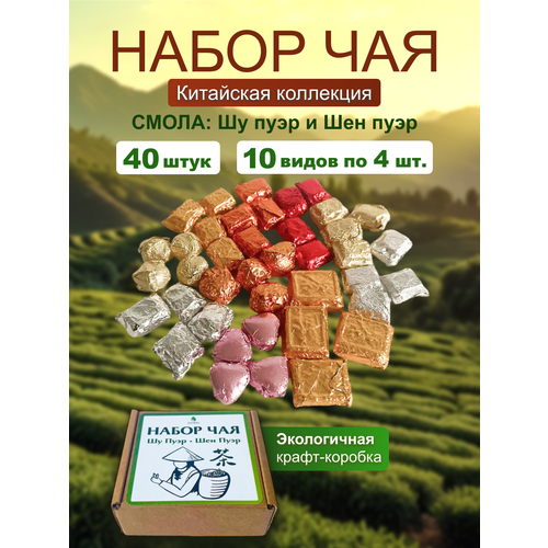 Набор китайского чая смола пуэр ассорти SCOPIO 40 штук, 10 видов по 4 штуки