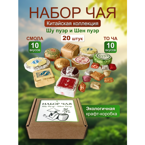 Набор прессованного китайского чая мини то ча шу и шен пуэр 20 шт SCOPIO