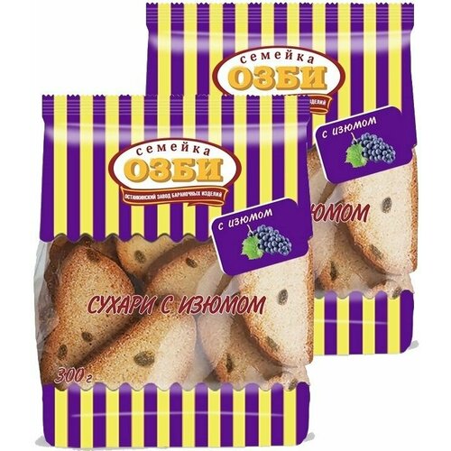 Сухари классические с изюмом, с отделкой сахаром Семейка озби, 2 пакета по 300 г