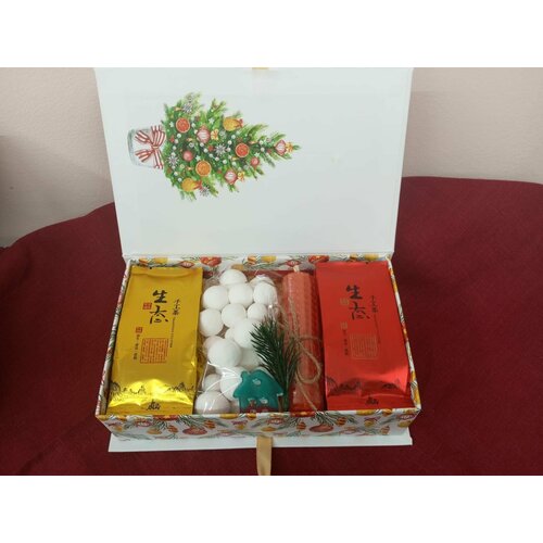 Набор чая "Новый Год" с 6 ароматами чая, сладостями и восковыми свечами