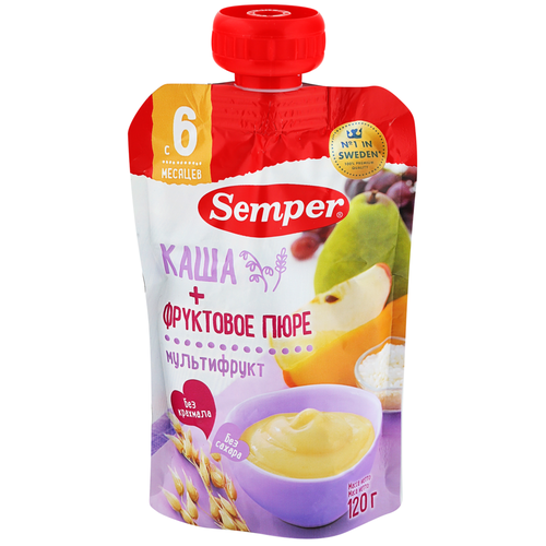Пюре фруктово-злаковое SEMPER Мультифруктовое, с кашей, с 6 месяцев, 120г